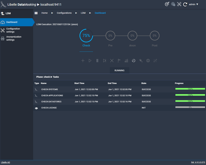 In the check phase, Libelle DataMasking checks the infrastructure of your IT and whether the target system is available. Especially for SAP environments, it ensures that the system is not on production. This is done fully automatically and is an important step in order to take full advantage of our data masking software. Errors or fields that were not recognized can then be easily corrected.