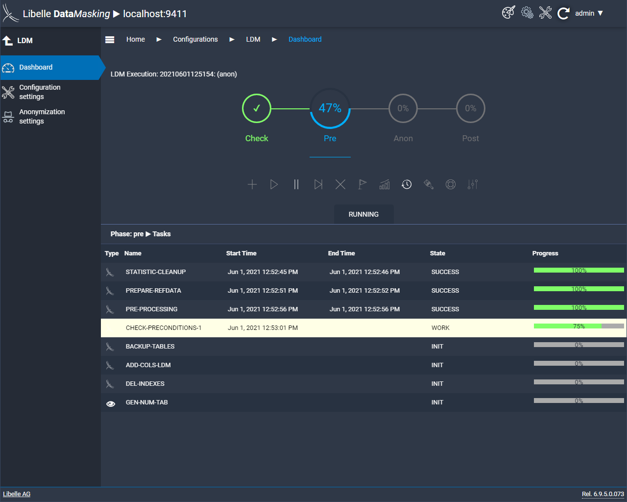 After the successful check, the next step is the pre-phase. Here, the supplied reference files are provided and the keys for anonymization are generated. If necessary, you can also create backup tables here. This is a further facilitation that comes with our data masking software before your first anonymization. If this has not been done according to your wishes, you can fall back on the backups.