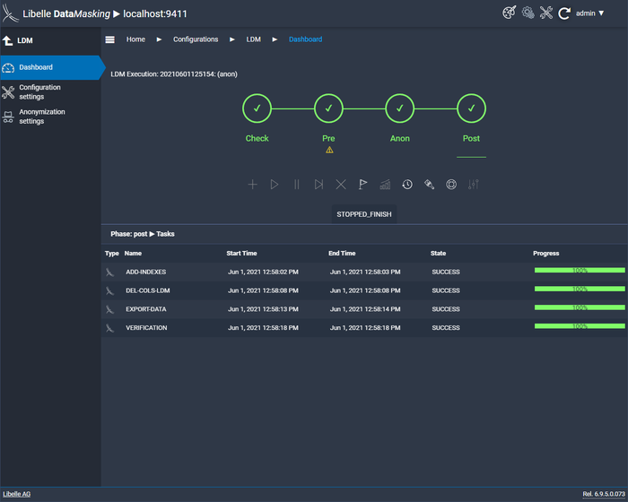 In the last step, the post phase, it is checked whether the consistency of the data has been maintained, a final measure to obtain an optimal result. To give you a complete overview of the anonymization, Libelle DataMasking provides you with a comprehensive final report with all relevant information.